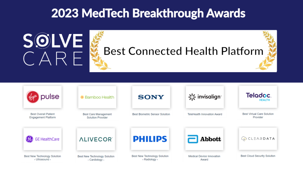 The MedTech Breakthrough Awards are designed to honor outstanding medical technologies, companies, and individuals that demonstrate innovation and excellence in various facets of the healthcare industry. Nearly 4,000 nominations were received from all over the world for the 2023 awards, the industry evaluation was extensive and extremely competitive. As a winner this year Solve.Care is in great company – some of the winners from other categories include GE Healthcare, Teladoc, Philips, LetsGetChecked, Boston Scientific, Babylon, Sony, Virgin Pulse, COTA Healthcare, Sleep Number, LeanTaaS, Abbott, Invisalign, Elsevier, Amwell and many more impressive companies and startups in the larger digital health industry.