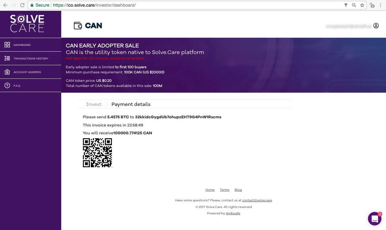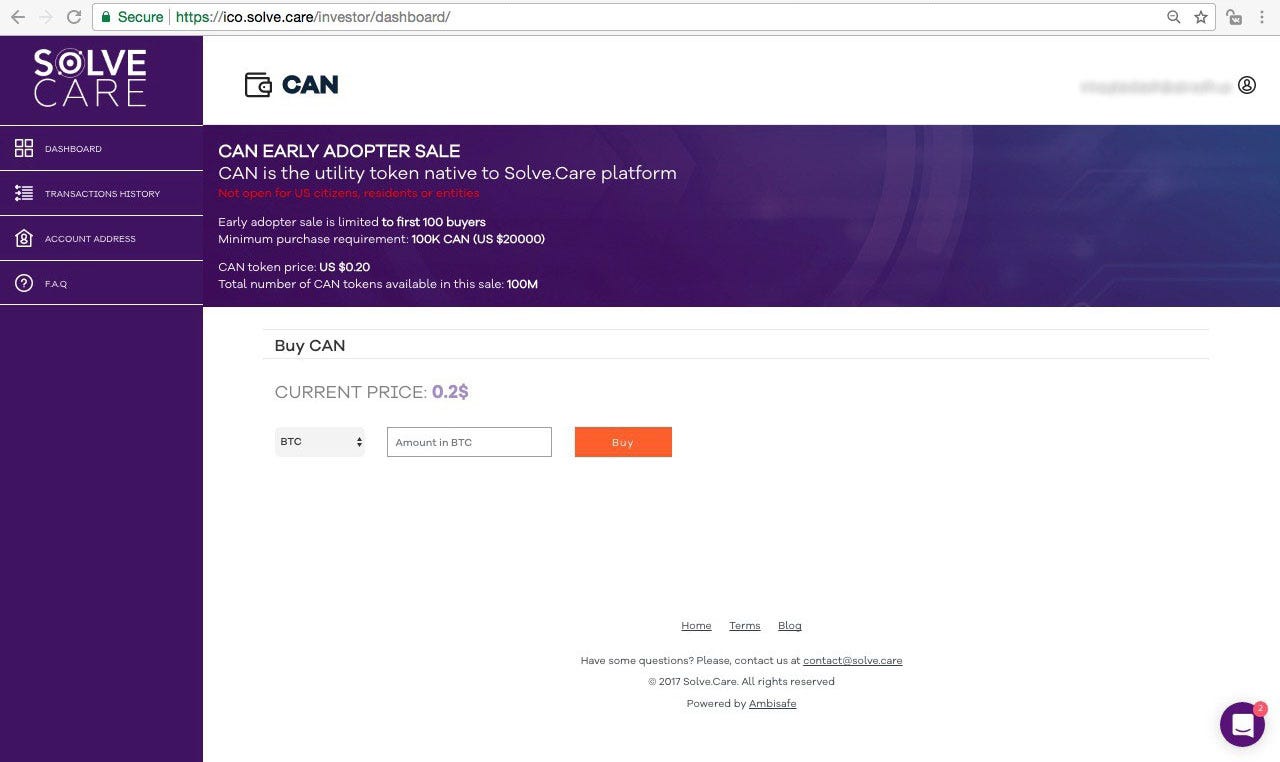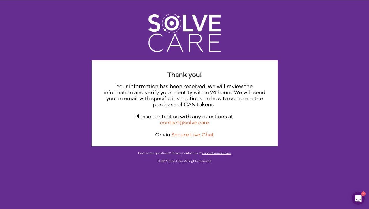 Important: Pay attention to domain name. It should be ico.solve.care. If it looks different, please do not proceed and let us know.