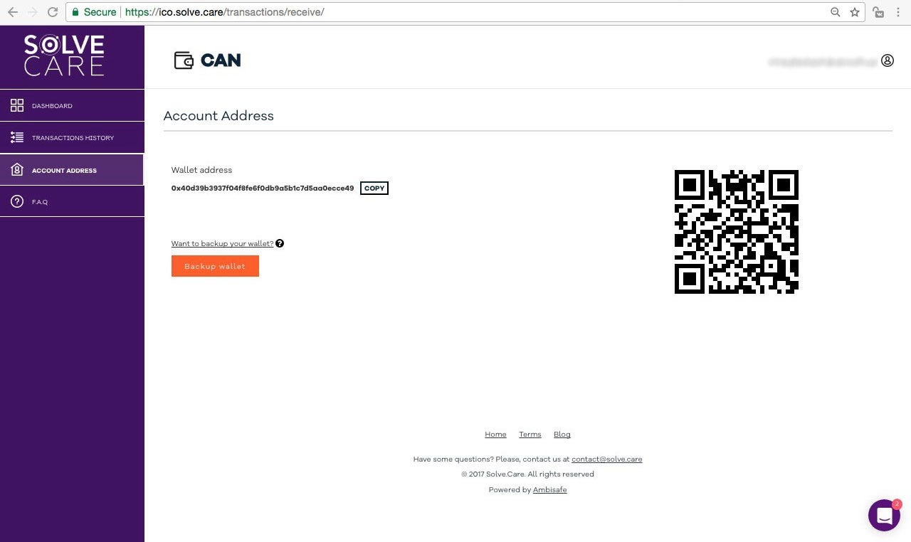 The next menu section is the Account address. There is your wallet address that should only be used for CAN tоkеns.