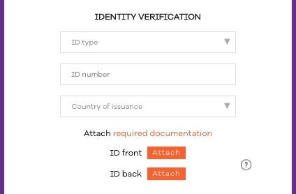 You need to verify your identity by choosing ID type you want to use for verification. It can be UID, Passport, Voter ID, Driver Licence or Other document valid in your country. Then, upload this ID from both front and back sides in pdf or jpg format.