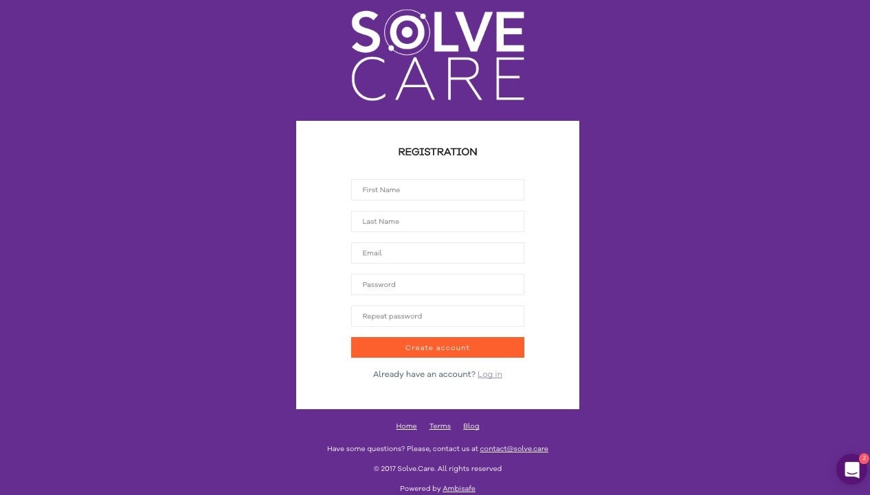 By clicking “Buy token” button on our Tоkеn sale page you will get to the Sign-up page of the Solve.Care tоkеn sale wallet. Important: Pay attention to the domain name. It should be ico.solve.care. If it looks different, please do not proceed and let us know.