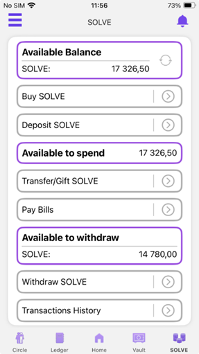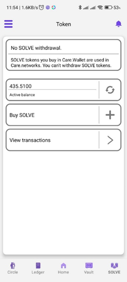 The withdraw SOLVE feature is applied only for SOLVE tokens, which have resulted from payment transactions (including referral bonus) to your Care.Wallet.