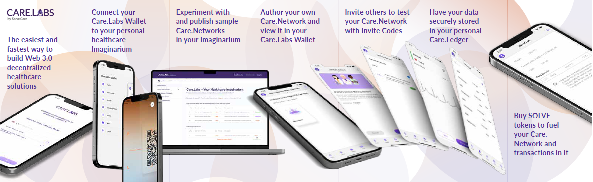Care.Labs is no longer just a concept but a reality. Using our new Care.Labs Wallet mobile app and companion web application we call the Care.Labs Imaginarium authors can create Care.Protocols (Care.Protocol is an immutable definition of a Care Network, participant roles, relationships, Care.Journeys, Care.Cards, Care. Events and interoperability) to test out their very own Care.Networks.
